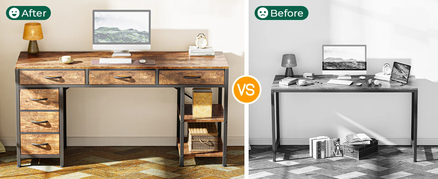 Elevate your home office or gaming setup with our 54-inch Computer Desk featuring six spacious drawers and a modern reversible design. This versatile desk is perfect for work, gaming, or study, providing ample storage and organization.