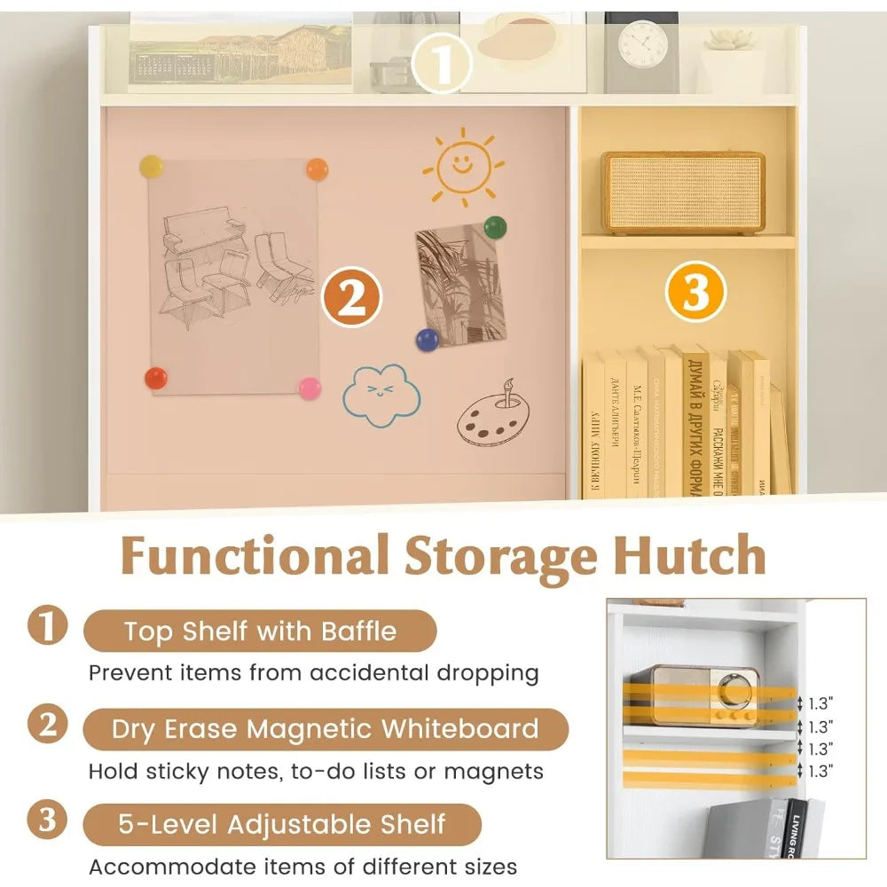 - Functional Storage Hutch: Features a top shelf with a baffle to prevent items from falling, plus a 5-level adjustable shelf for versatile storage options.