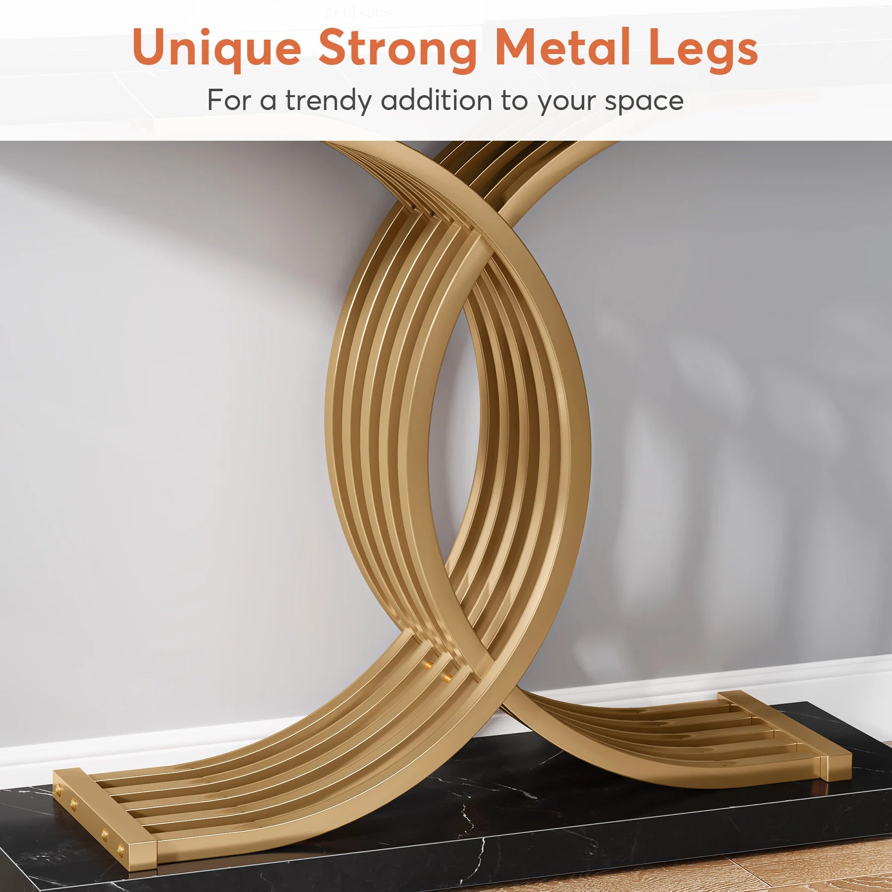 Ljustra Modern 39-Inch Console Table Faux Marble Gold Metal Legs