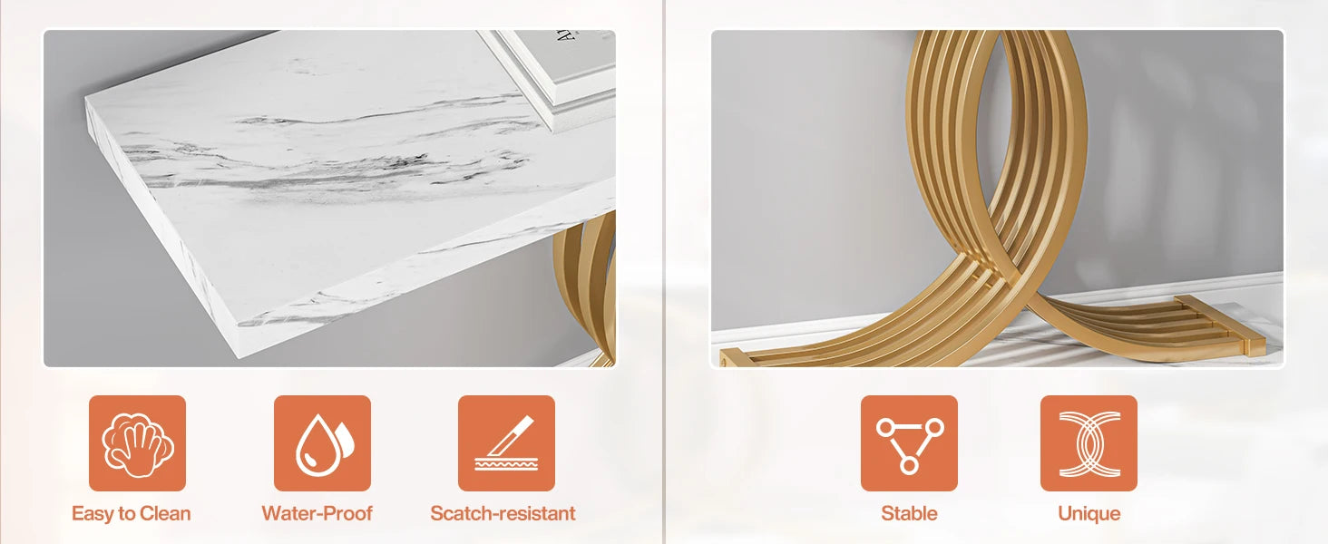Transform your entryway or living room with the stunning Ljustra Console Table. With its modern design, faux marble finish, and geometric gold metal legs, this console table is the perfect blend of style and function.