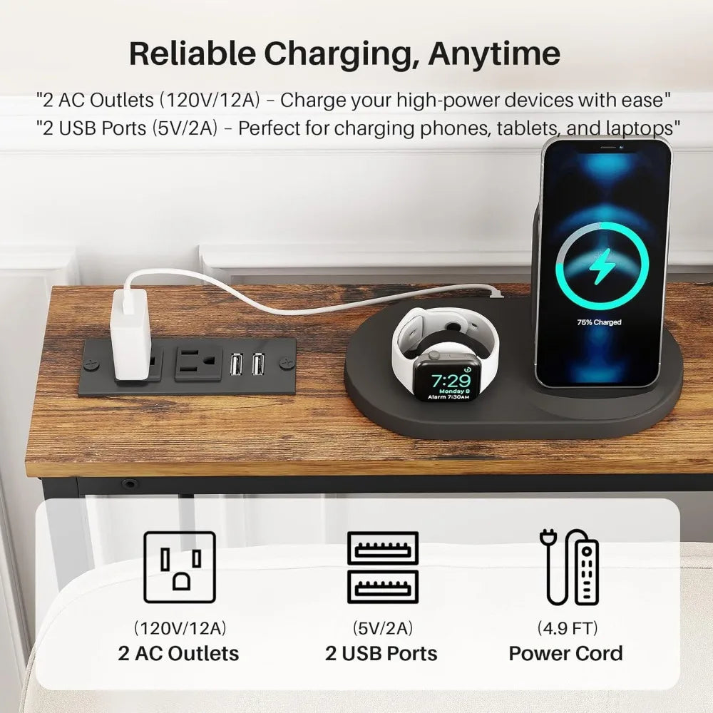 - Durable and Stable Power Outlets: Equipped with 2 outlets (120V/12A) and 2 USB ports (5V/2A), this table meets all your charging needs for phones, laptops, and tablets. Includes a 4.9ft heavy-duty power cord for added convenience.