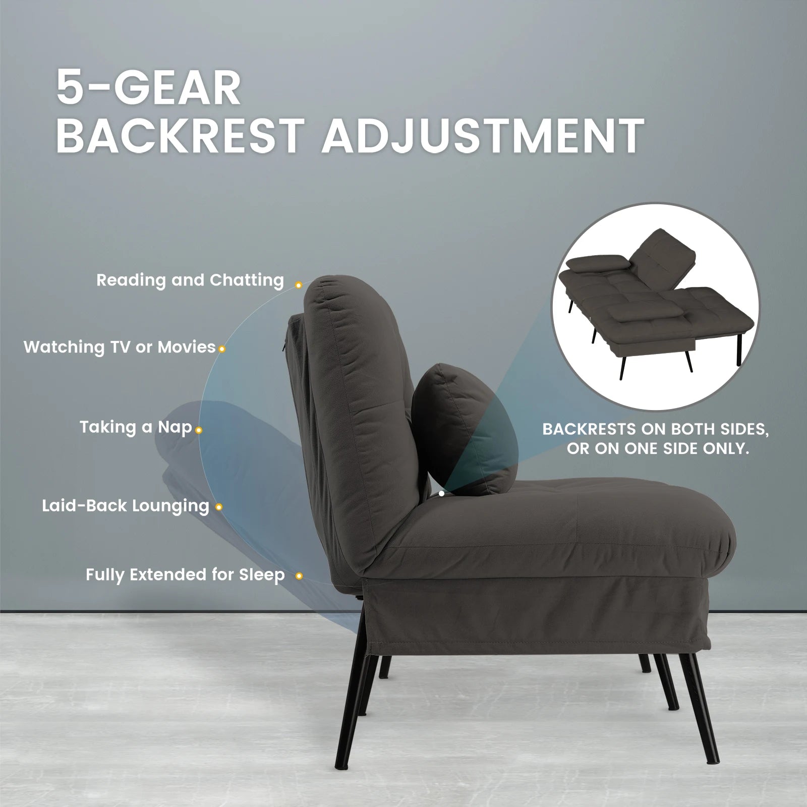 - Adjustable Backrest: Easily convert between a cozy sofa and a comfortable bed with just the push of a button. Perfect for unwinding after a long day or accommodating guests.
