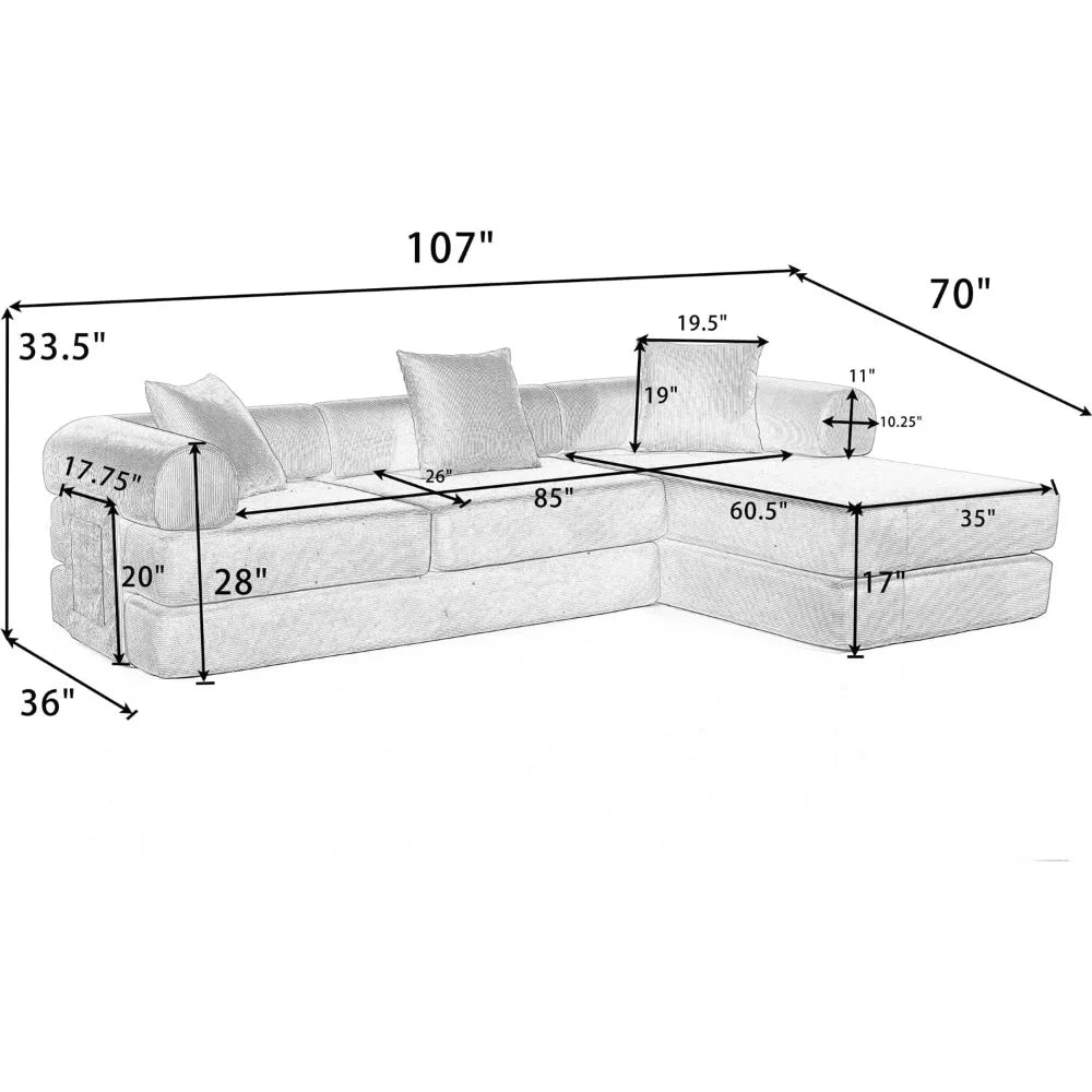 - Oversized Comfort: Spanning 107.5 inches, this boneless couch provides generous sleeping space for two adults or multiple children. Enjoy cozy movie nights or casual hangouts with family and friends.