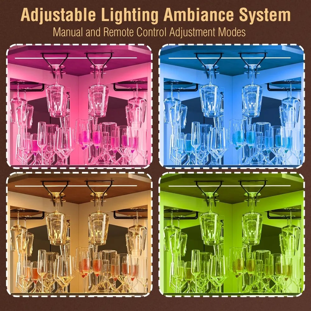 - Stylish LED Lighting: Create a warm and inviting atmosphere with RGB LED corner light strips, perfect for showcasing your wine collection and glassware.