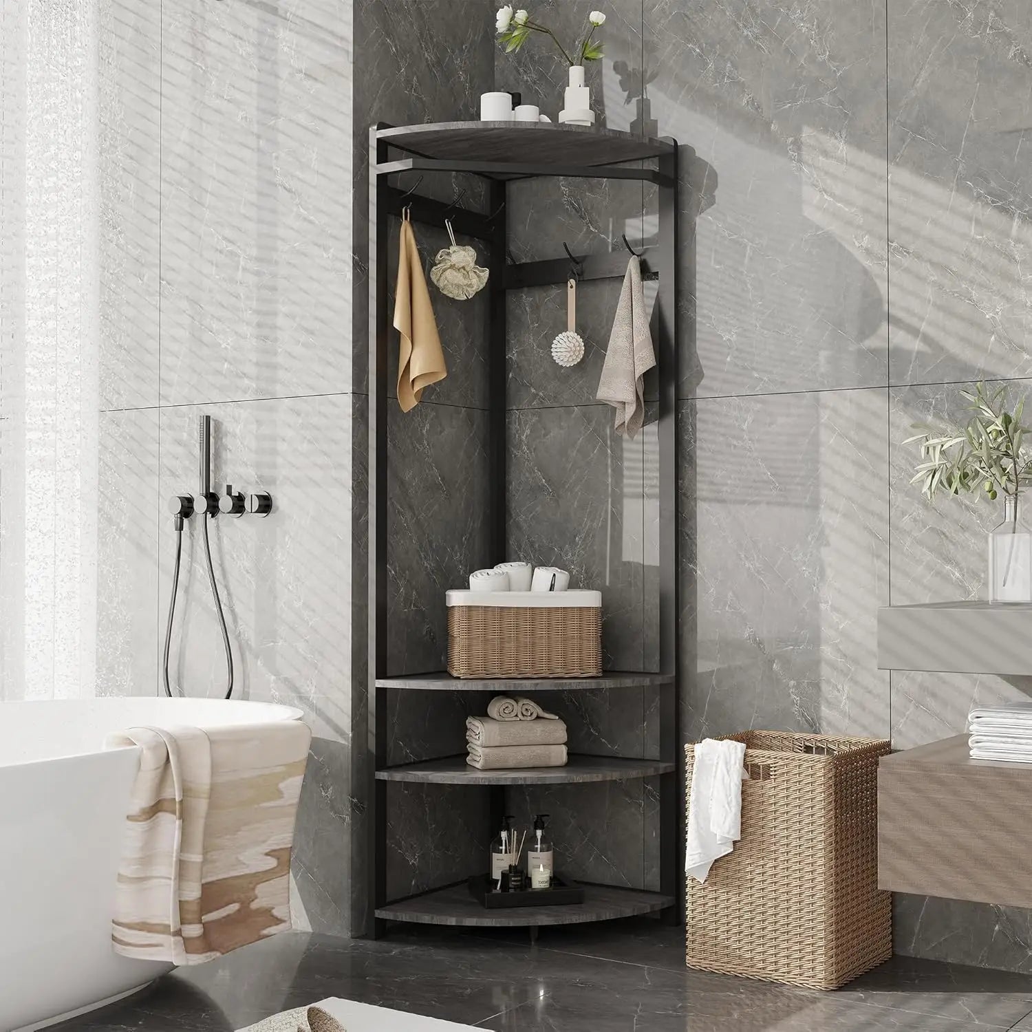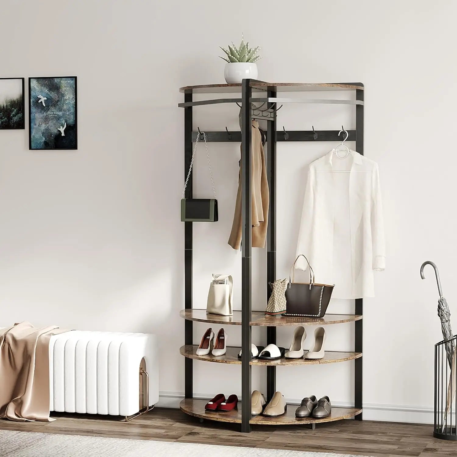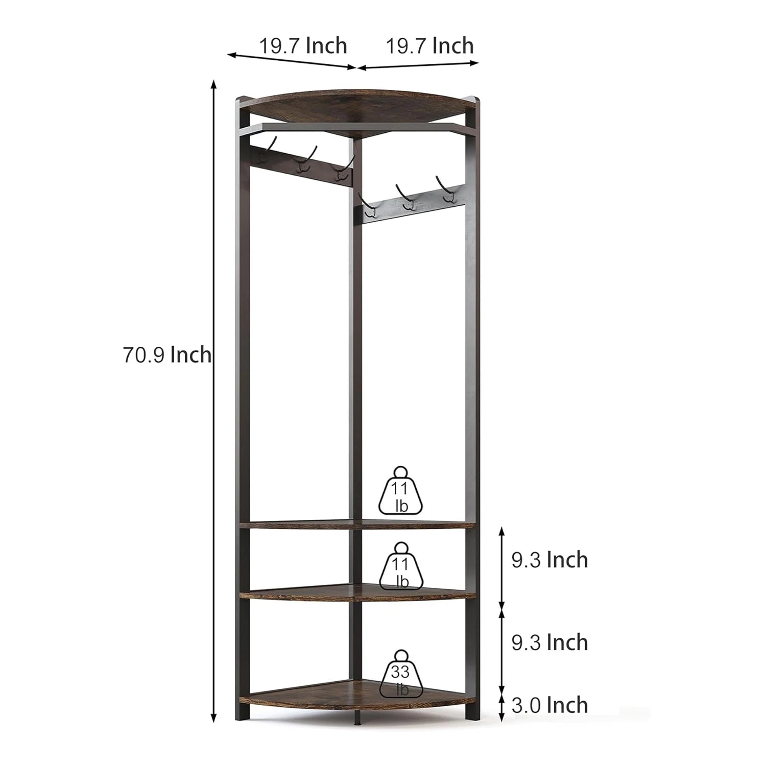 Ljustra Corner Coat Rack Stand Freestanding Hall Tree with 6 Hooks 3 Shelves