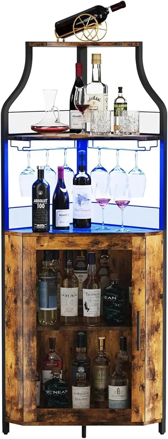 Corner Wine Bar with 5-Tier Storage Heavy Duty Industrial Design