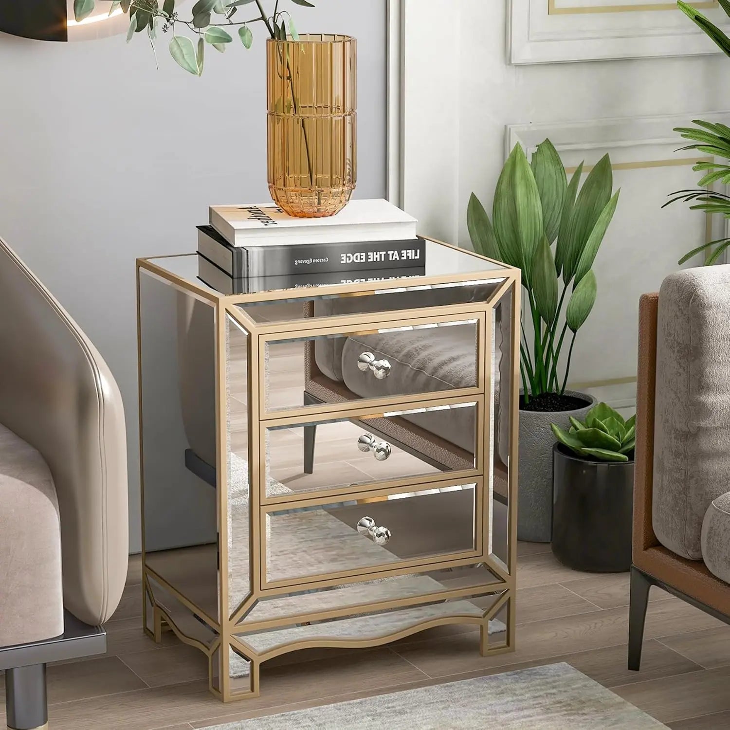 Luxury Crystal Mirrored Nightstand Bedside Cupboard Modern Furniture
