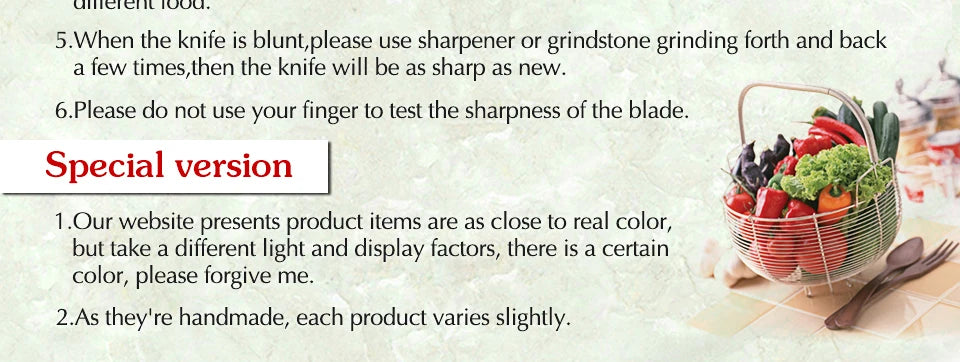 Our knives are not just tools; they are an extension of your culinary passion. With a perfect balance of beauty and functionality, each knife is designed to enhance your cooking experience. Whether you are an amateur cook or a professional chef, these knives will meet your every need.