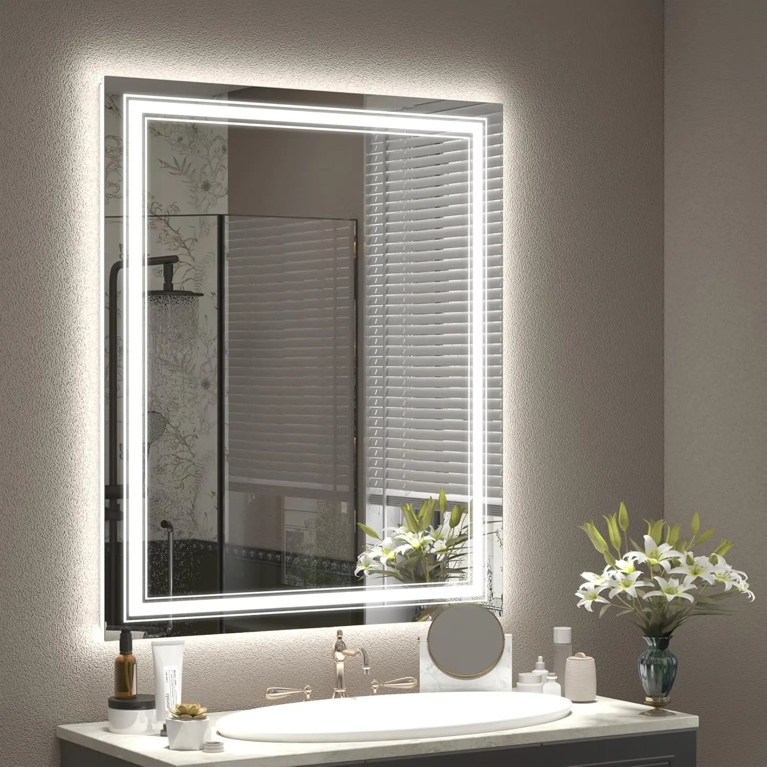 - Dual Lighting: Enjoy both front-lit and backlit illumination with high-quality 24W light strips for flawless makeup application and skincare routines.