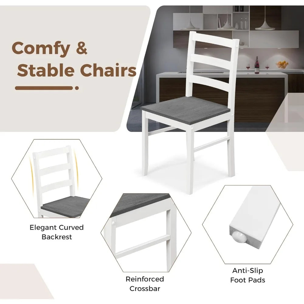 - 5-Piece Set: Includes a rectangular dining table (45" x 28" x 30") and 4 ergonomic wooden dining chairs (16" x 18" x 34") for a complete dining solution.