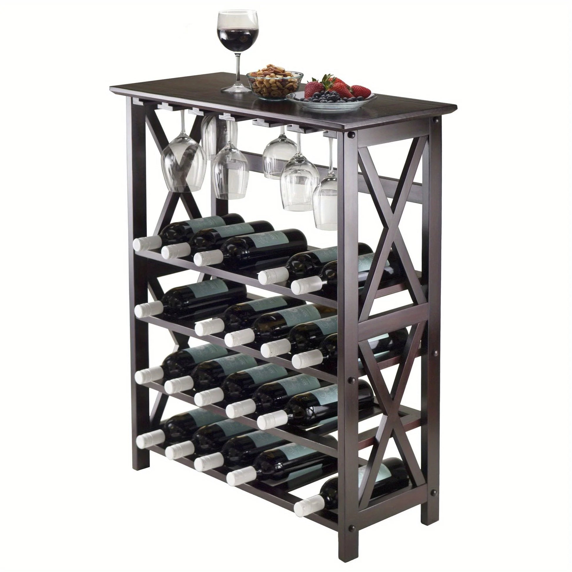 Display Wine Rack Solid Wood Espresso Finish Holds 24 Bottles Glasses