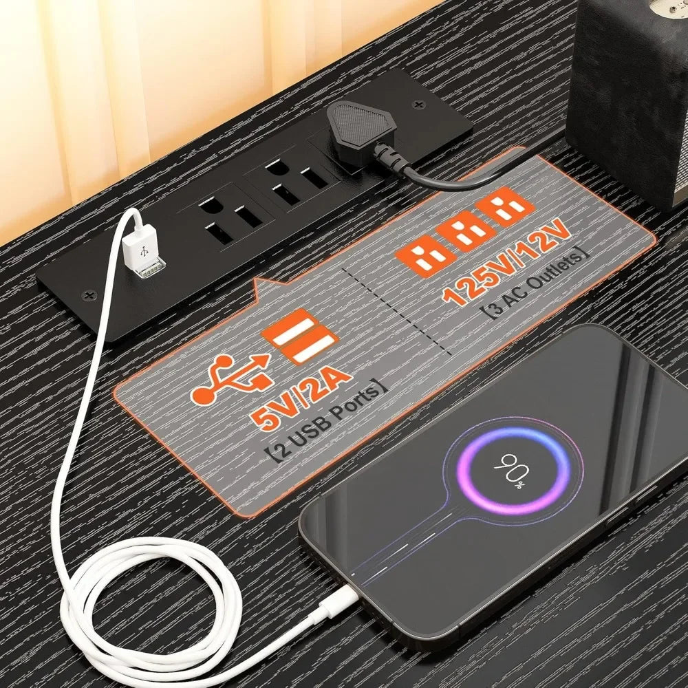 - Integrated Charging Station: Features 2 USB ports and 3 AC outlets for convenient charging of your devices without extra cords.