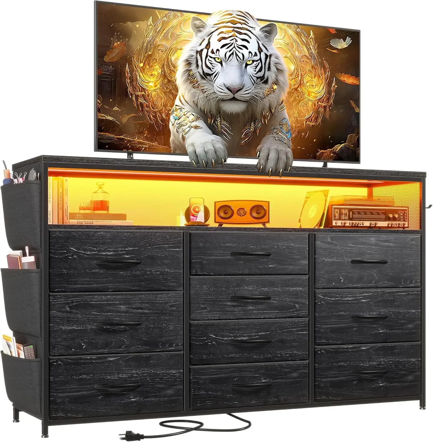 Dresser TV Stand with 10 Drawers LED Lights & Power Outlets for 55" TV