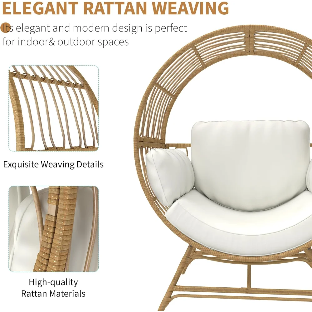 Egg Chair Oversized Rattan Wicker Indoor Outdoor Lounge 350LBS Capacity