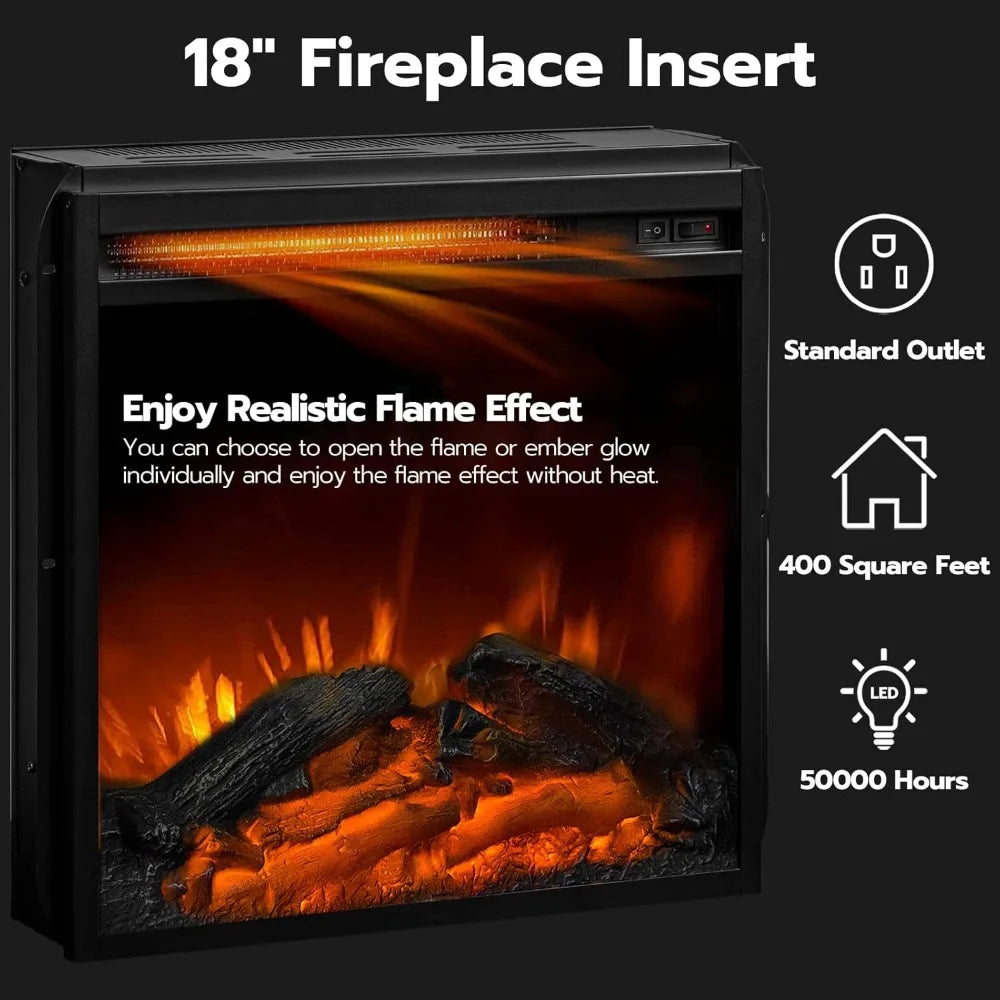 - Artistic Ambiance: Enjoy a stunning 18" fireplace with dual switches to choose between a mesmerizing flame effect and cozy warmth, perfect for any season.
