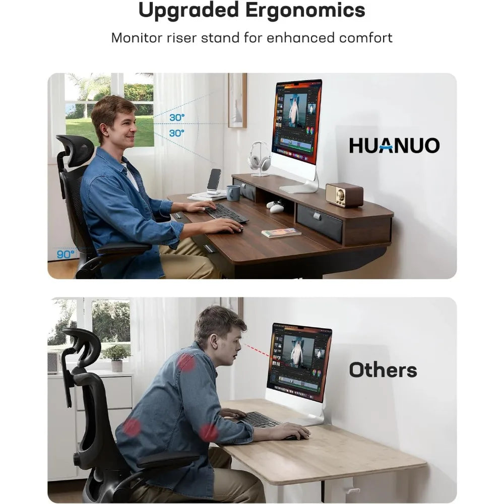 - Built for Organization: Features a grommet hole for wire routing and a cable management tray to keep your workspace tidy, along with an extended monitor stand for easy screen placement.