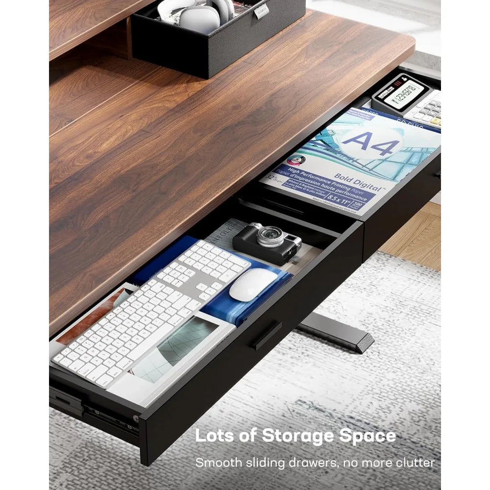 Electric Standing Desk 55x30 Inch with Drawers Adjustable Height Home Office