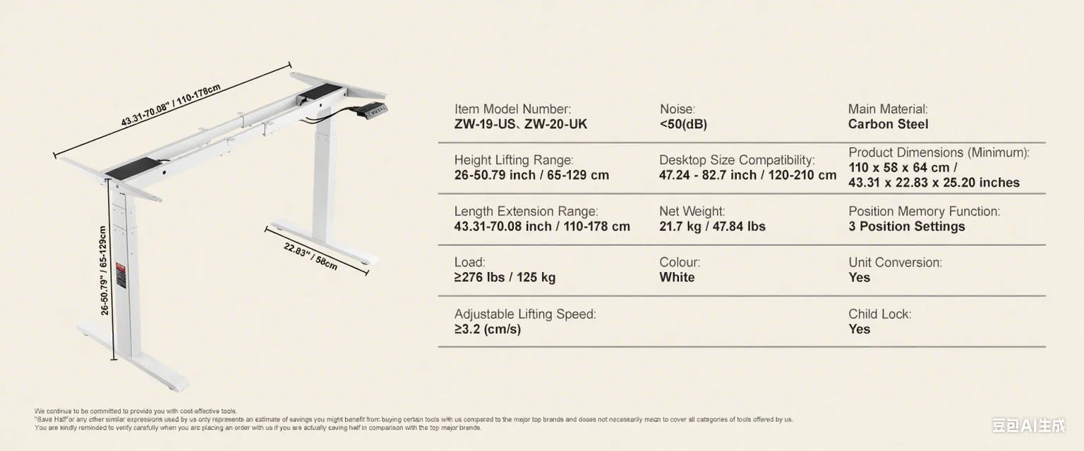 - Rapid Height Adjustment: Experience swift transitions with a lifting speed of over 1.26 inches per second.