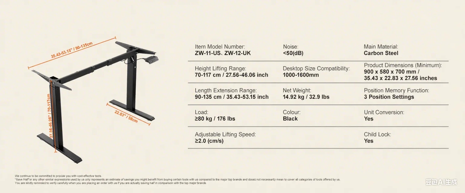 - Whisper-Quiet Operation: Enjoy a peaceful working environment with noise levels under 50 decibels during height adjustments.
