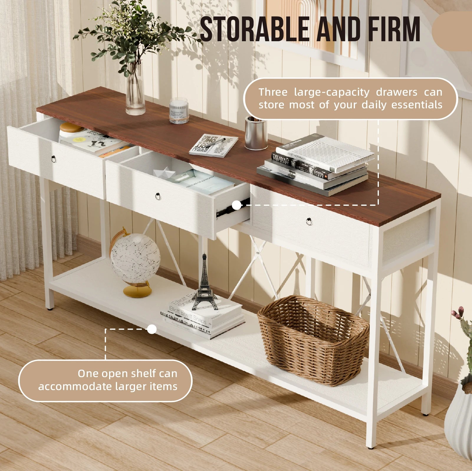Introducing the Ljustra 67" Entryway Table, a perfect blend of style and functionality for your home. This farmhouse console table not only enhances your entryway but also serves as an efficient storage solution.