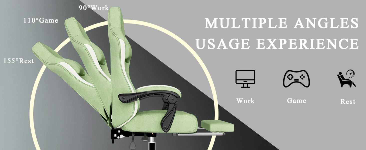 - Multi-functional Adjustability: With 90°-155° tilt adjustment and a hidden telescopic footrest, seamlessly transition from focused work to relaxation.