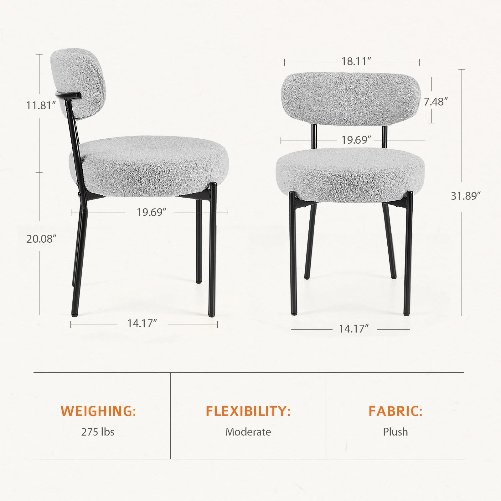 Ljustra Ergonomic Round Dining Chairs Set of 2 Plush Fabric Kitchen Chairs