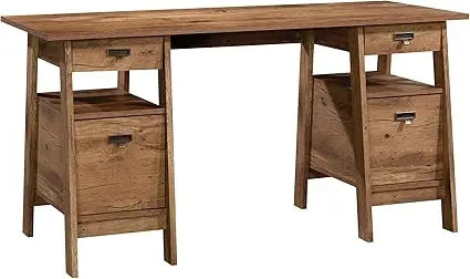 Executive Trestle Desk Vintage Oak Spacious Storage Home Office Workstation