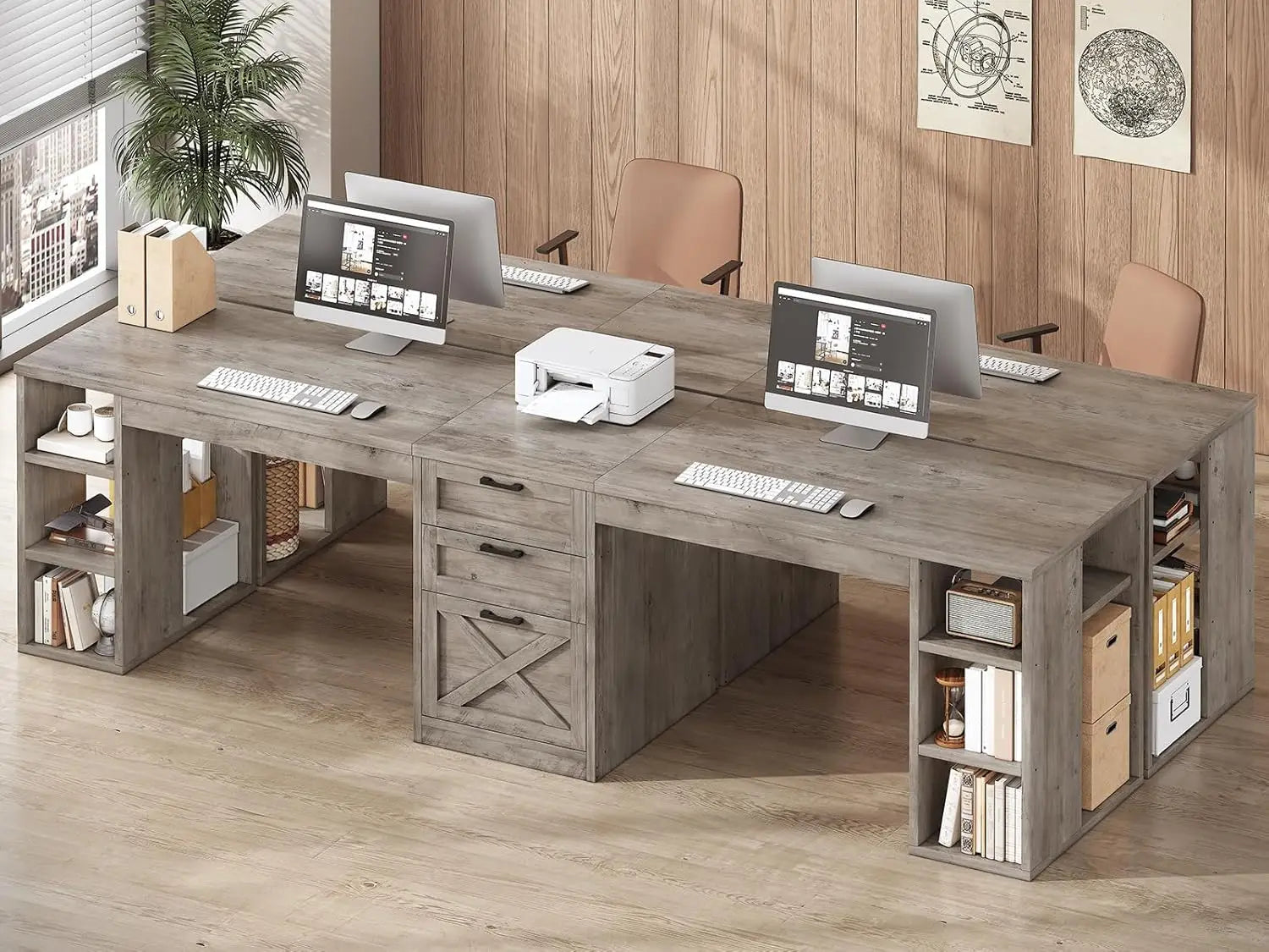 Discover the perfect blend of style and functionality with the Ljustra Farmhouse 96.5" Computer Desk. Designed for two users, this spacious desk is ideal for home offices, gaming setups, or collaborative workspaces. Enjoy the charm of farmhouse aesthetics while maximizing your productivity!