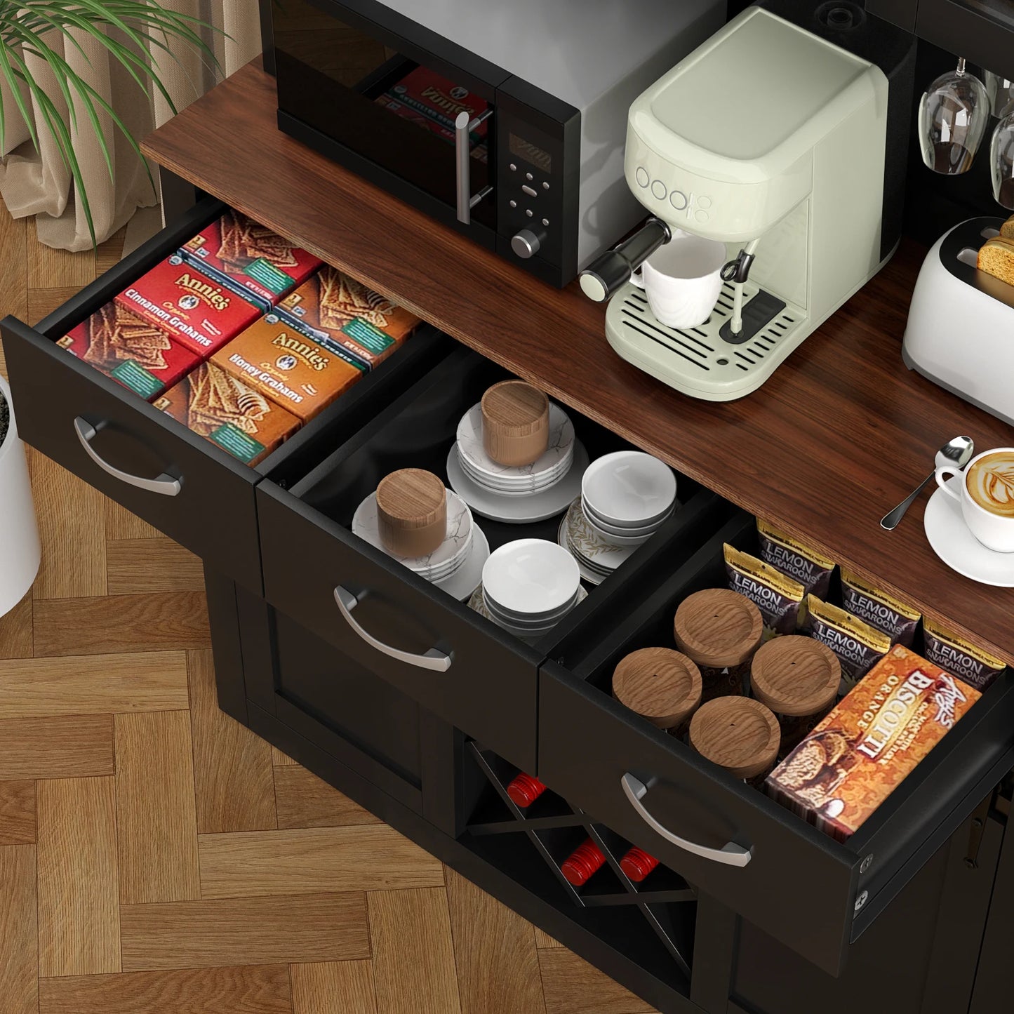 - Ample Storage Space: Features a combination of open shelves, glass-door shelves, and three drawers, perfect for organizing kitchen utensils and displaying your wine collection.