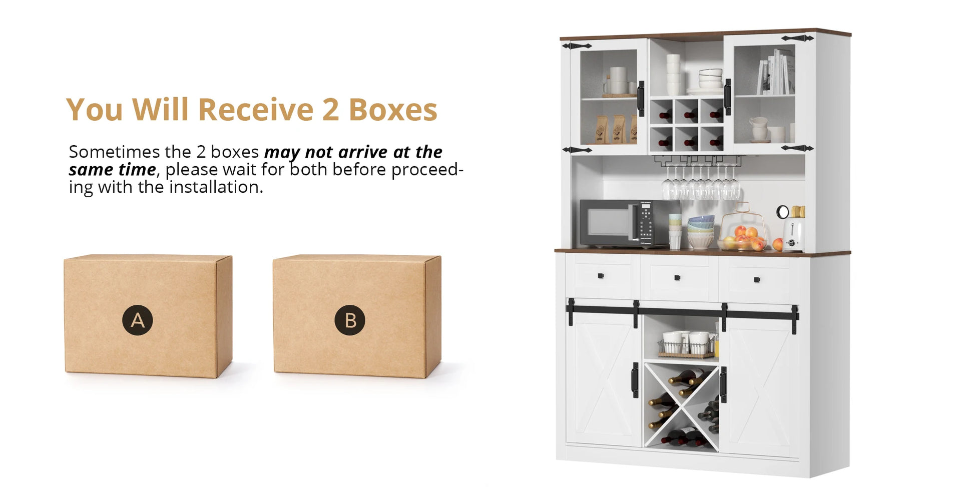 - Sliding Barn Door: Embrace the charm of farmhouse style with smooth sliding barn doors and adjustable shelves that provide easy access to your wine bottles and glassware.
