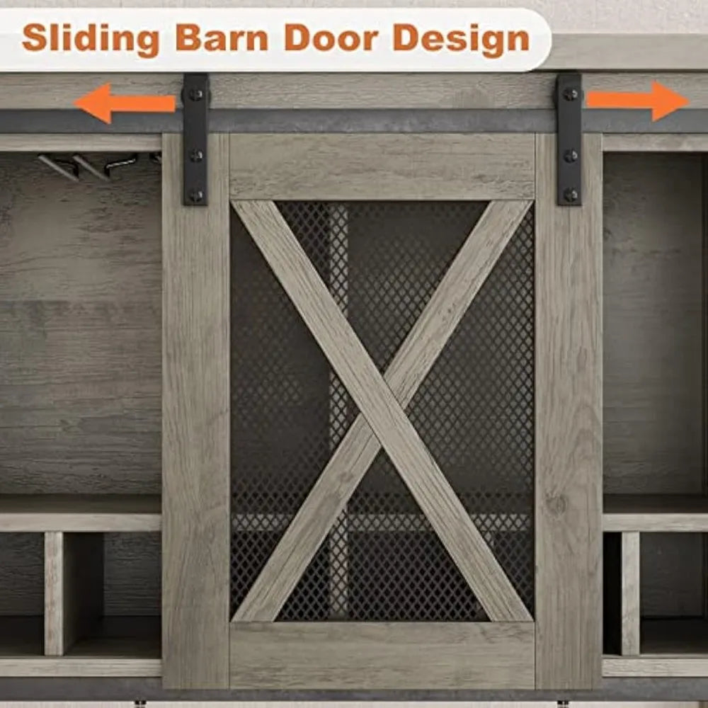 Farmhouse Buffet Storage Cabinet with Wine Glass Rack Bar Cabinet