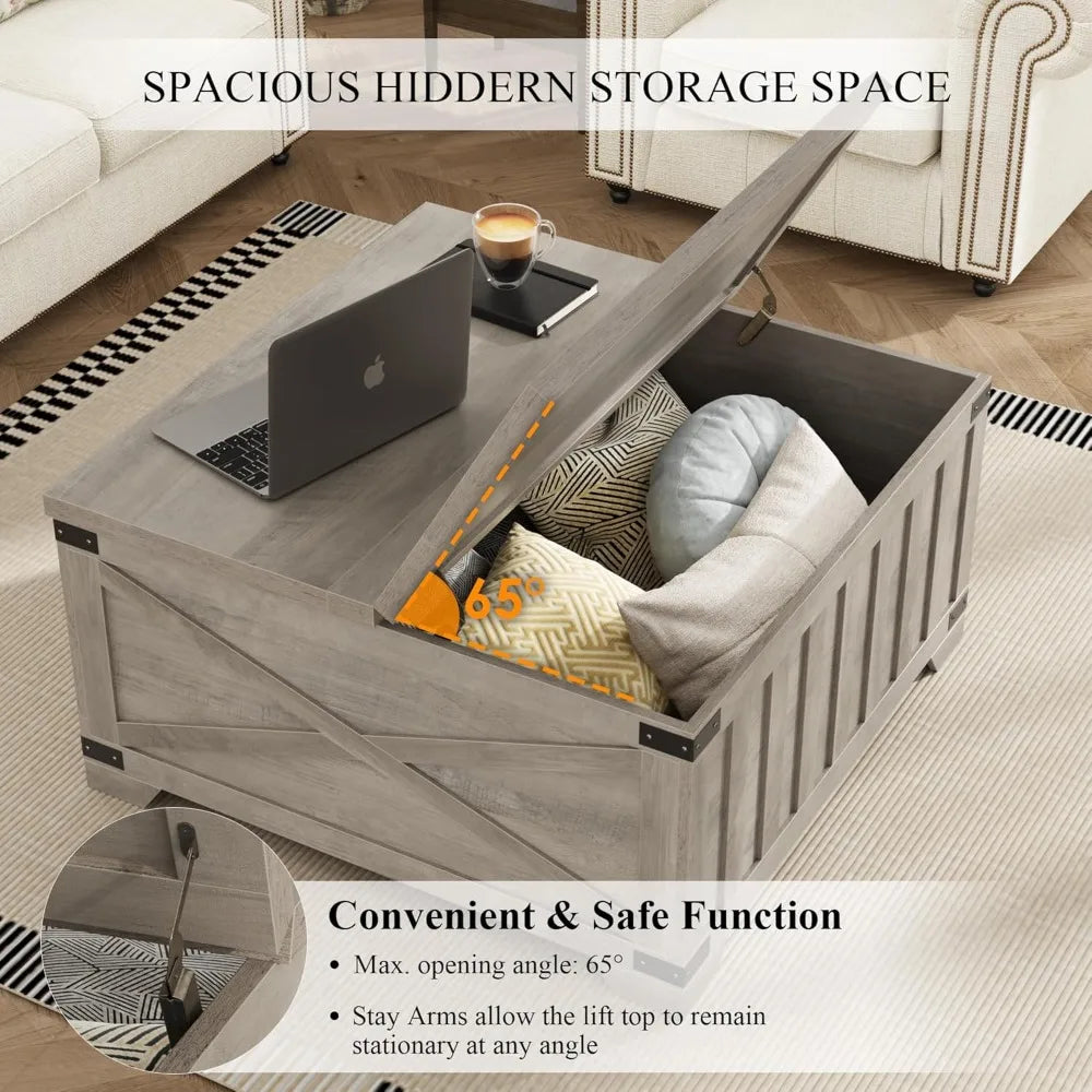 Farmhouse Coffee Table with Storage Vintage Lift Top Square Table