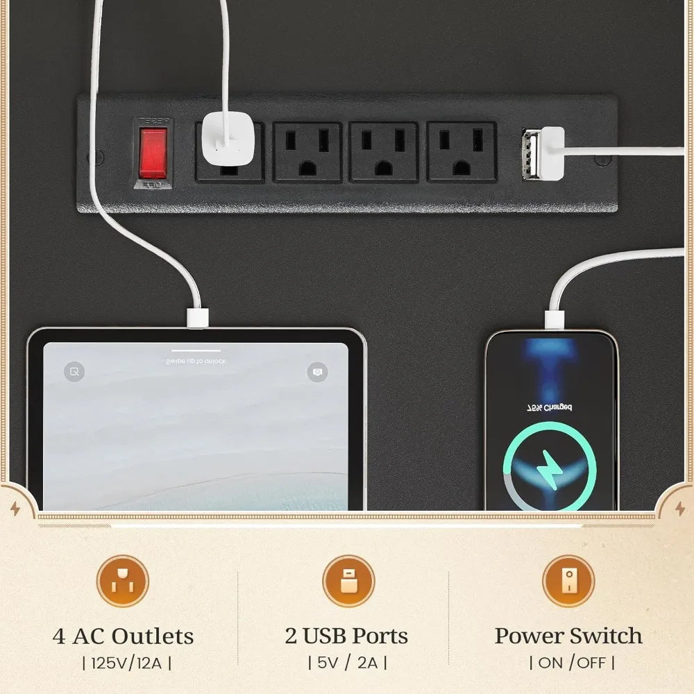 - Convenient Power Outlets: Stay connected with 4 AC outlets and 2 USB charging ports, eliminating the hassle of unplugging devices.