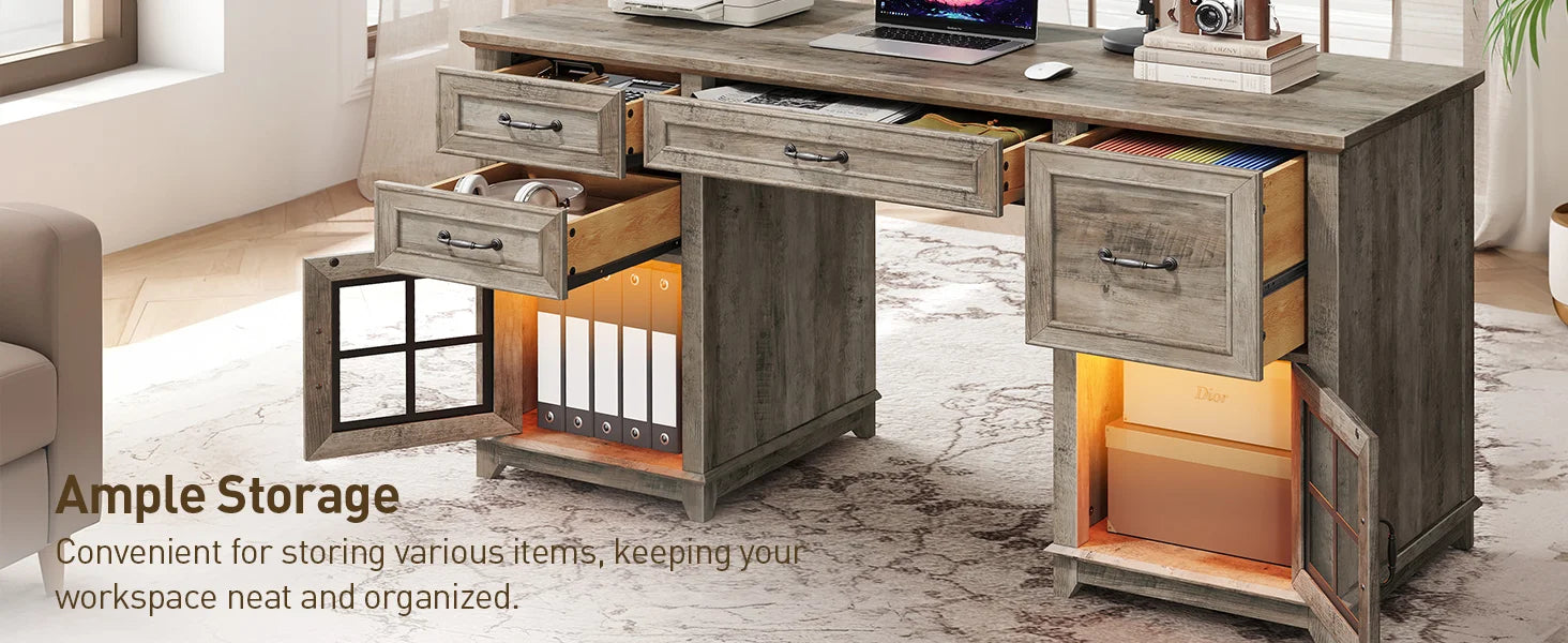 - Ample Storage: With a spacious tabletop, three storage drawers, and an adjustable file drawer, this desk provides plenty of space for all your essentials.