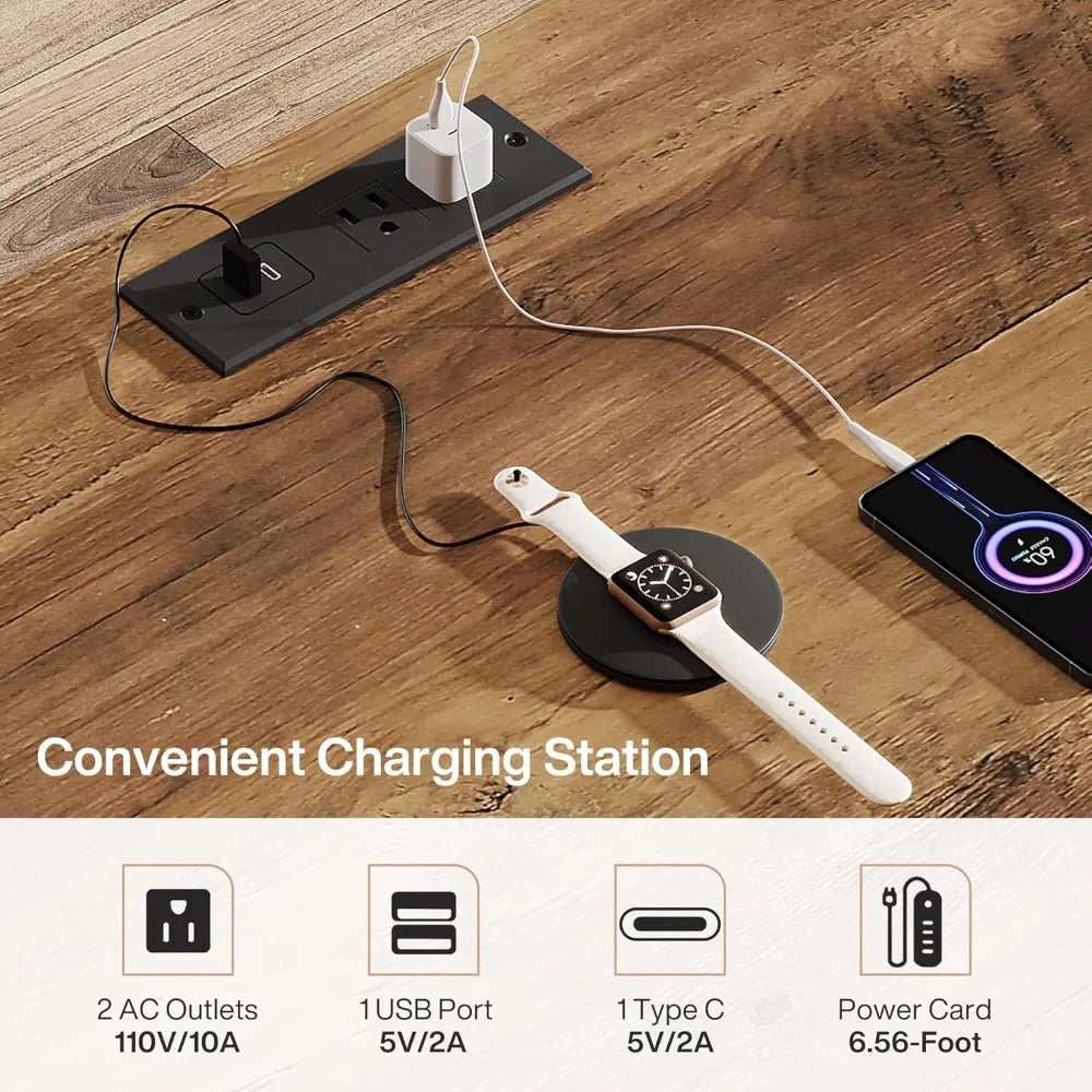 - Integrated Charging Station: Stay powered up with 2 AC outlets, 1 USB port, and 1 Type-C port for charging devices, keeping your workspace tidy.