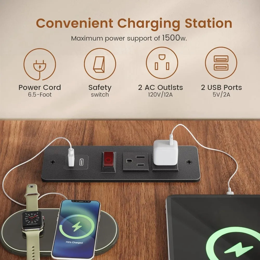 - Convenient Charging Station: Stay connected with a built-in charging port featuring 2 outlets and 2 USB ports, allowing you to power multiple devices safely and efficiently.