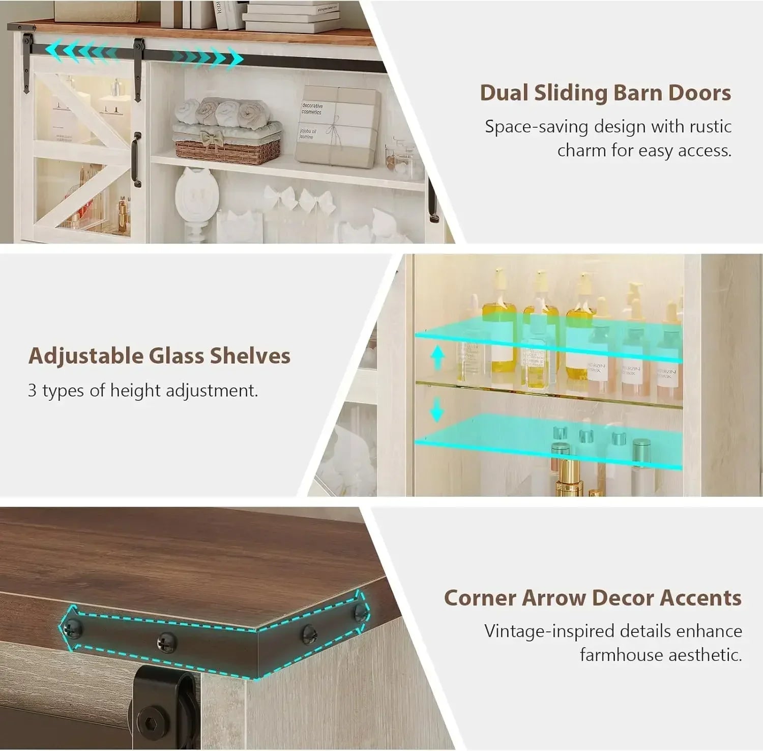 - Farmhouse Charm: The rustic design with sliding barn doors not only adds character but also provides easy access to your storage.