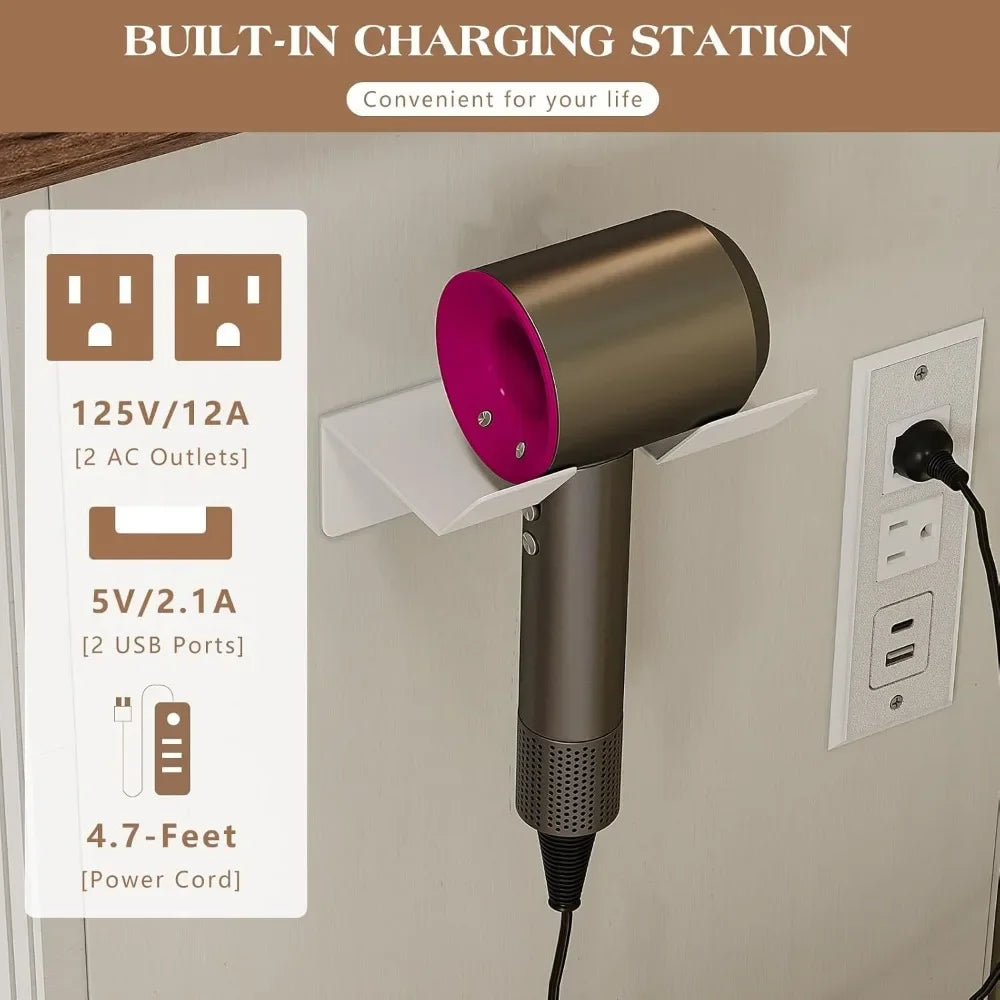 - Built-in Charging Station: Stay connected with a built-in charging station that includes two standard AC power outlets and two USB ports, perfect for using hair dryers and charging devices while you get ready.