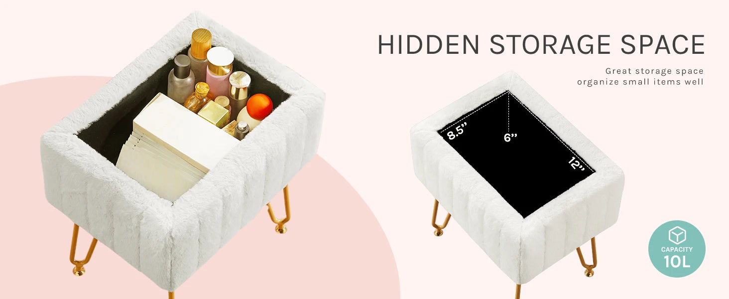 - Hidden Storage: Enjoy approximately 10L of hidden storage capacity, perfect for makeup, cosmetics, and magazines.