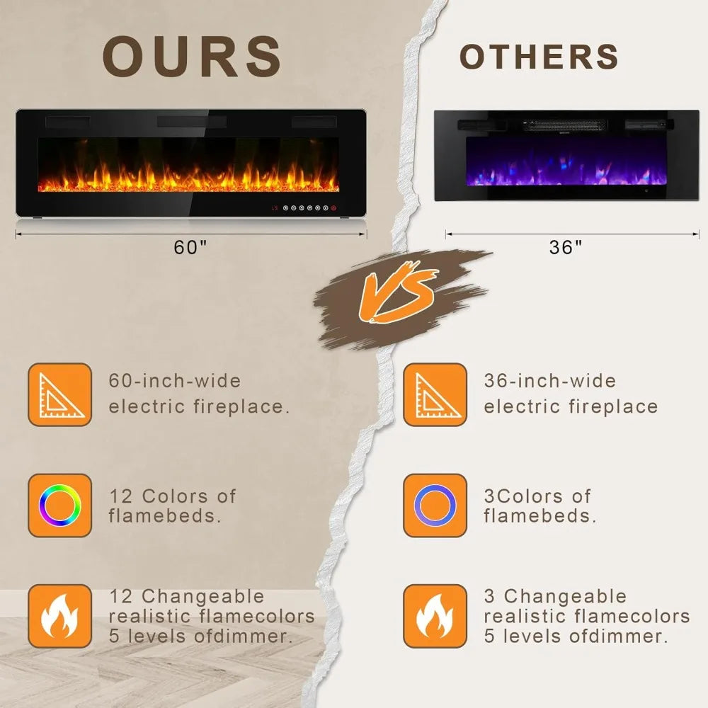 - Cozy Ambiance: Enjoy a lifelike flame effect with 12 changeable colors and 5 dimming levels to set the perfect mood.