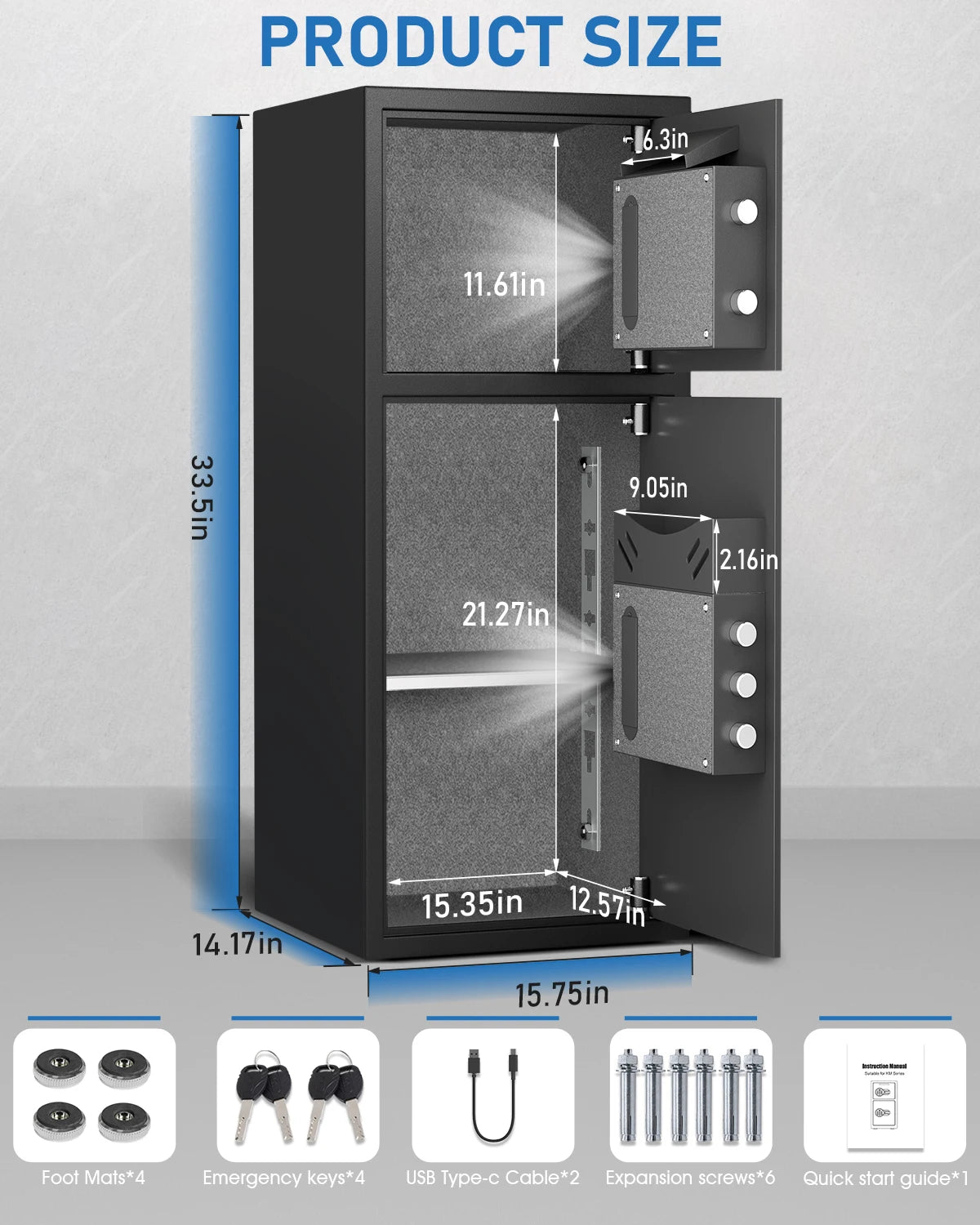 - Extra Large Storage: Perfect for trophies, laptops, documents, cash, jewelry, and more.