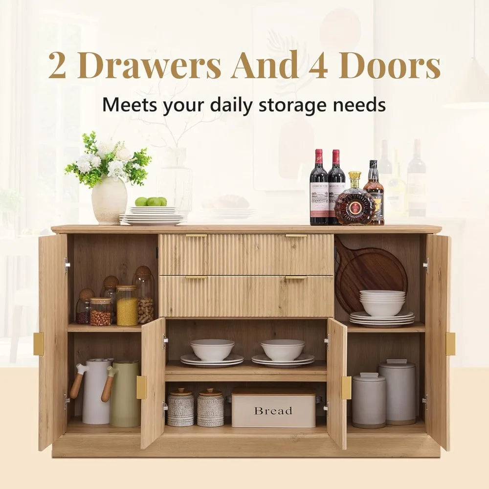 58 Inch Fluted Sideboard Cabinet Buffet Storage Rustic Wood Design