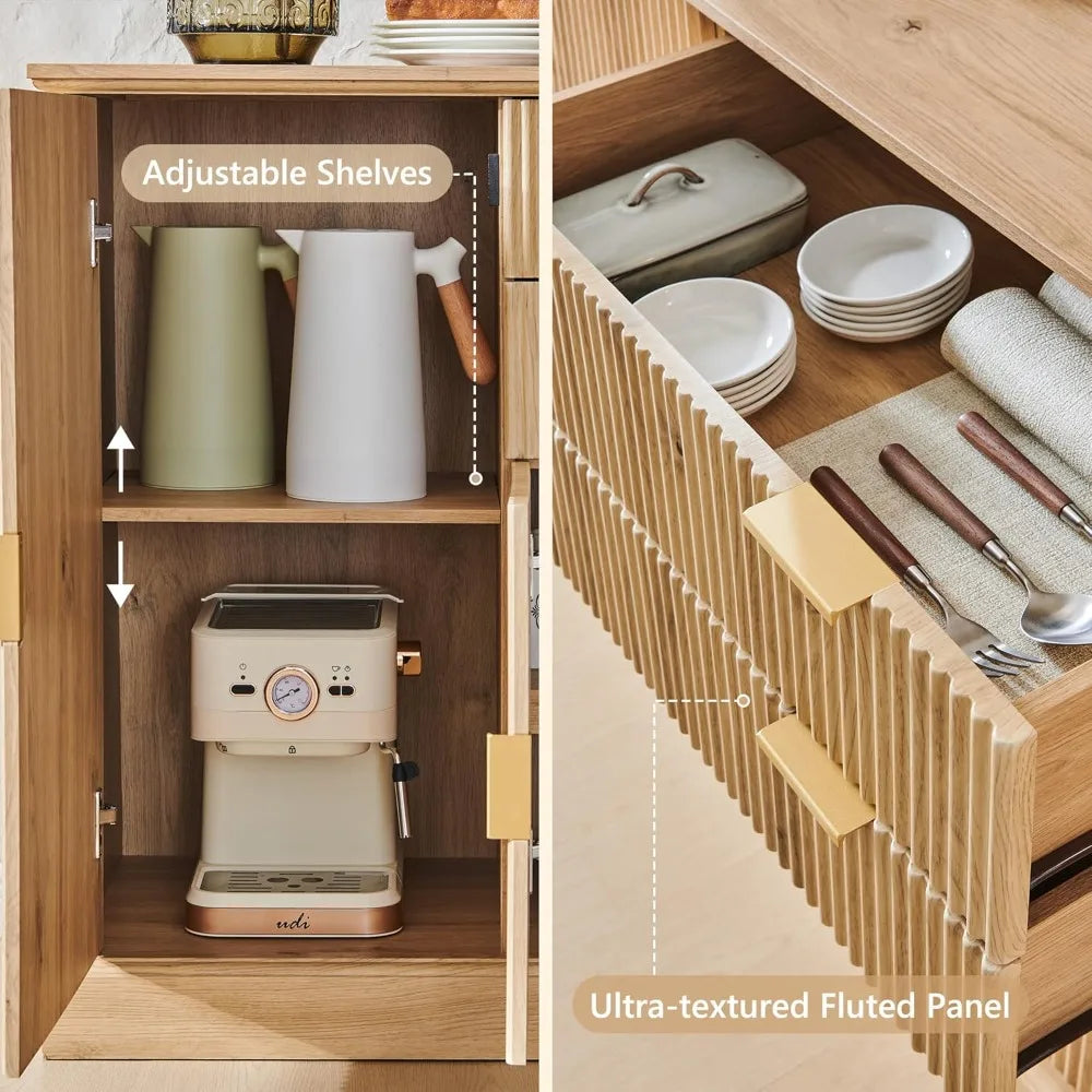 - Multi-Functional Use: Perfect as a dining buffet, kitchen appliance hub, or living room display center.