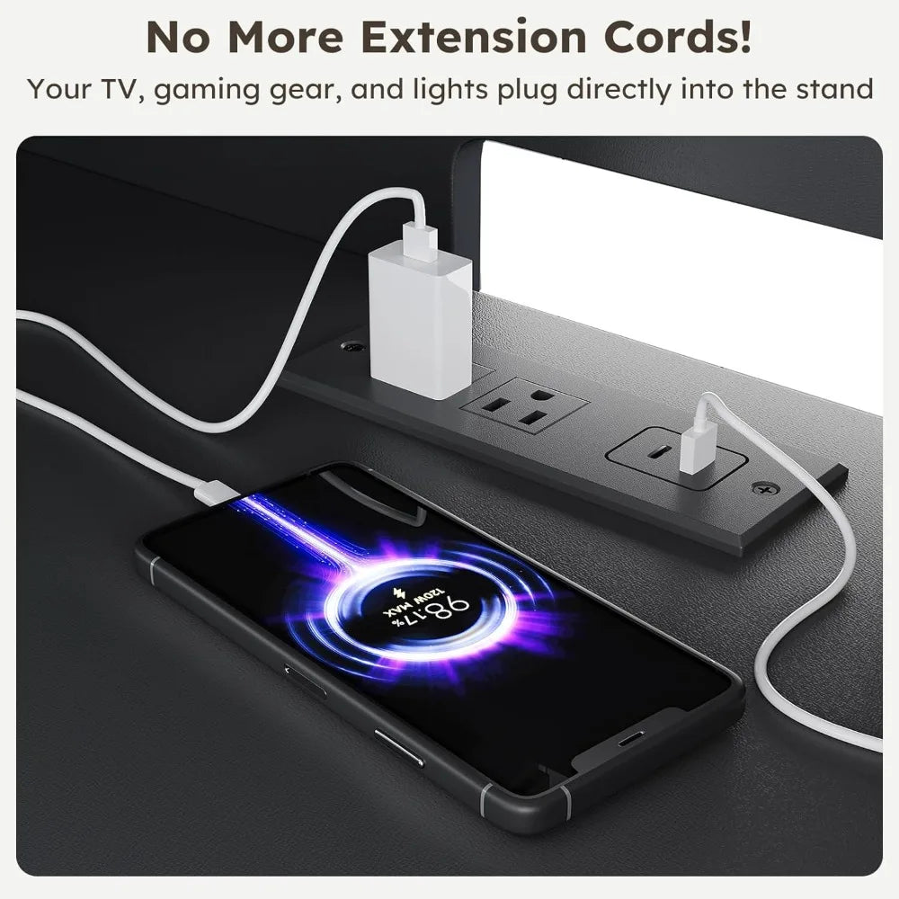 - Built-in Charging Station: Features 2 AC outlets and 2 USB ports, allowing multiple devices to charge simultaneously while keeping cords organized.