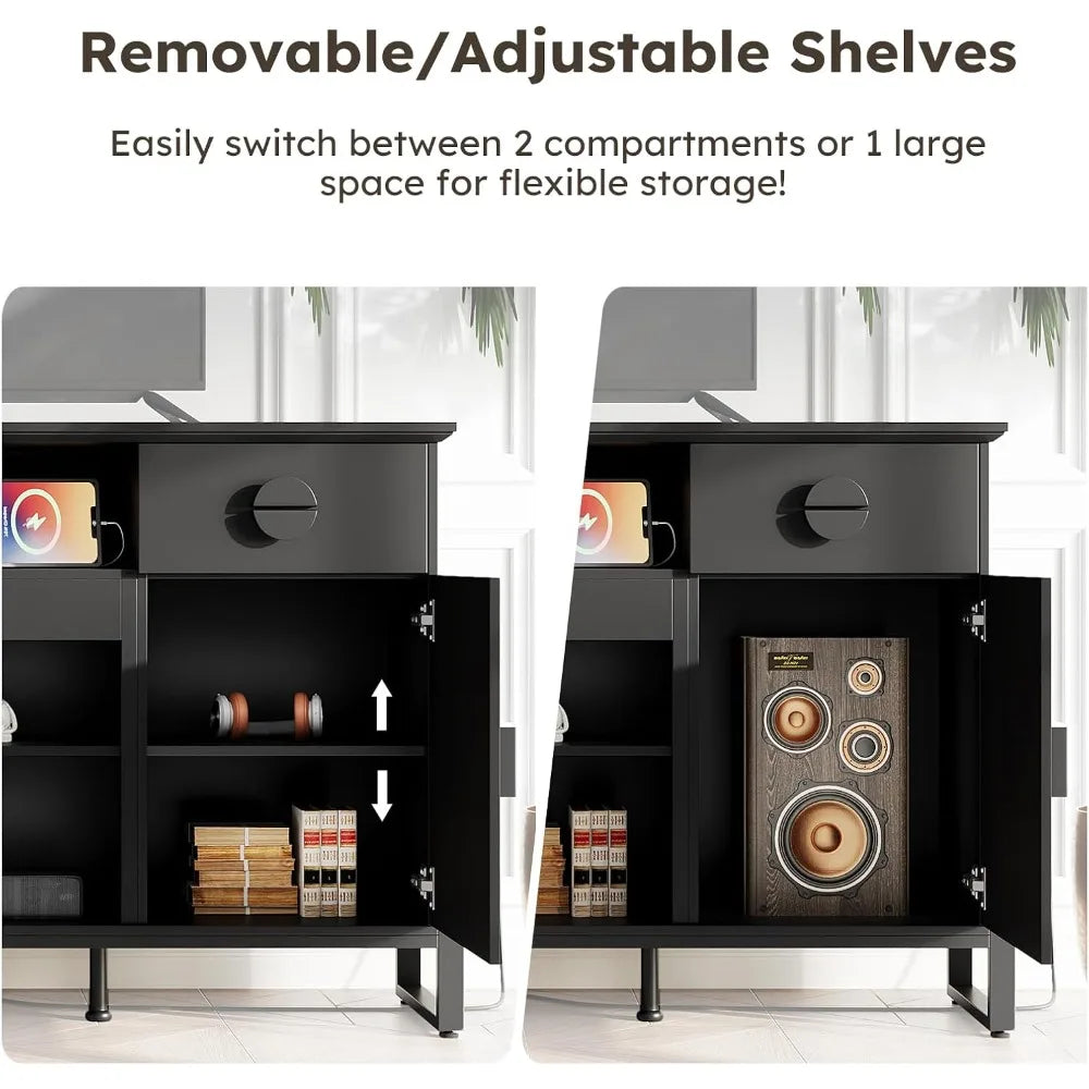 - Ample Storage: Includes 2 spacious drawers, 2 storage doors, and 3 open shelves—ideal for media devices, books, and decorative items.