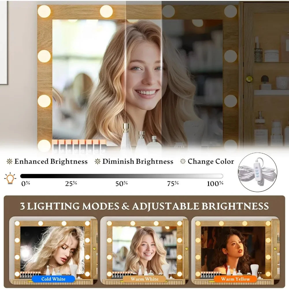 - 3 Lighting Modes & Brightness Adjustable: Equipped with 10 Hollywood bulbs, providing warm, natural, and cool lighting for all your makeup needs.