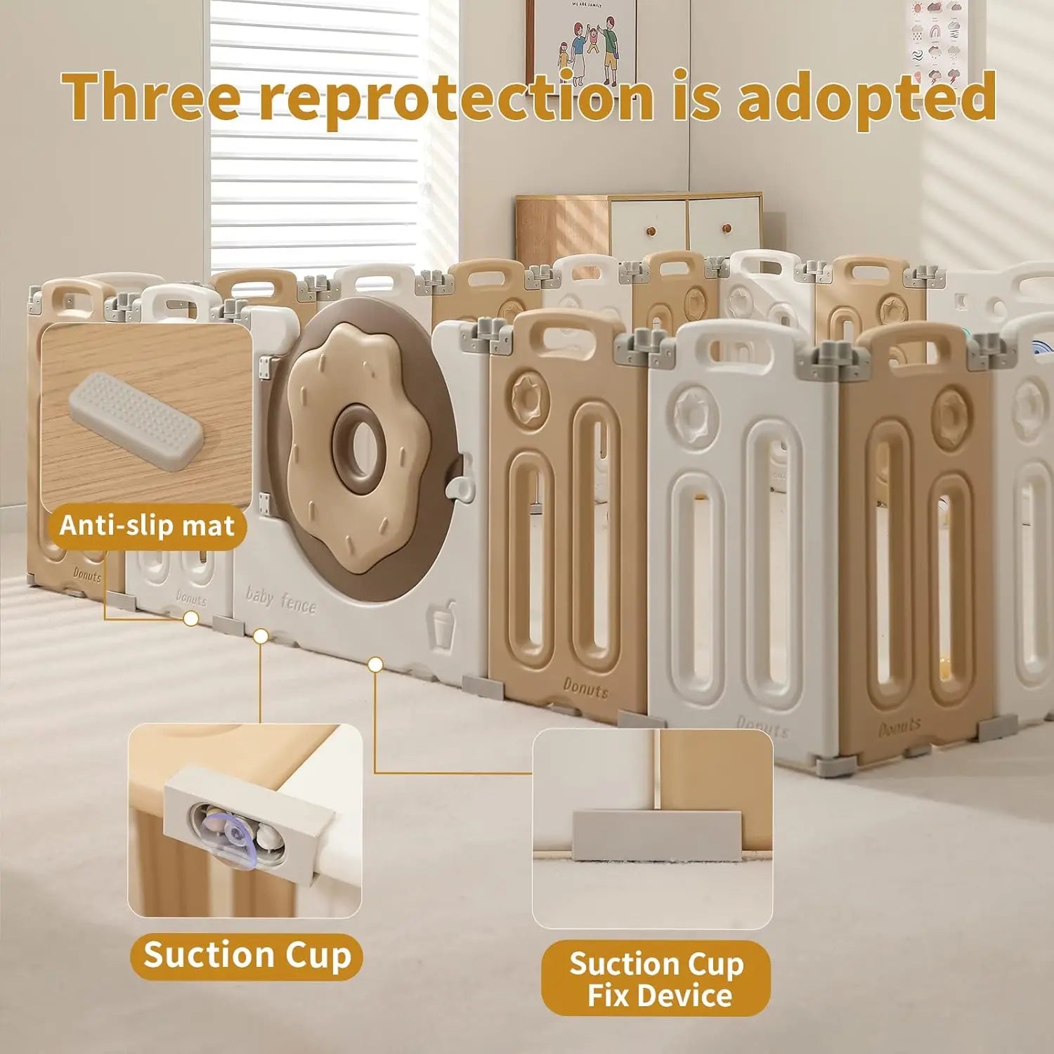 - Safety First: Equipped with a non-slip base and a secure safety lock gate, this playpen keeps your children safe while you attend to household duties.
