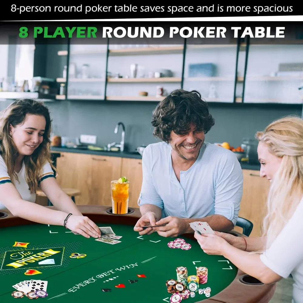 Foldable Round Poker Table for 8 Players with Cup Holders and Padded Rails