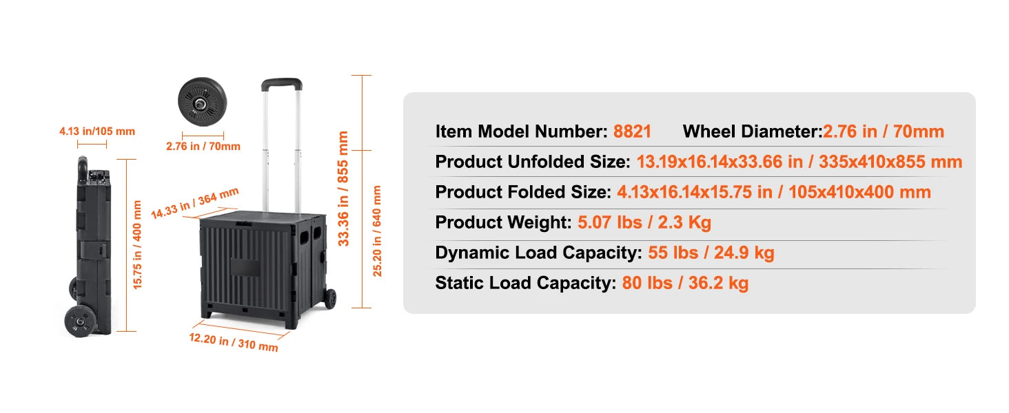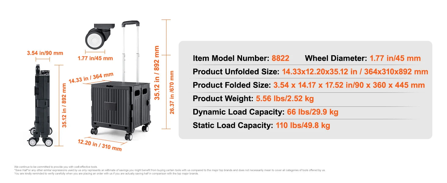 Ljustra Foldable Utility Shopping Cart Portable Handcart with Wheels