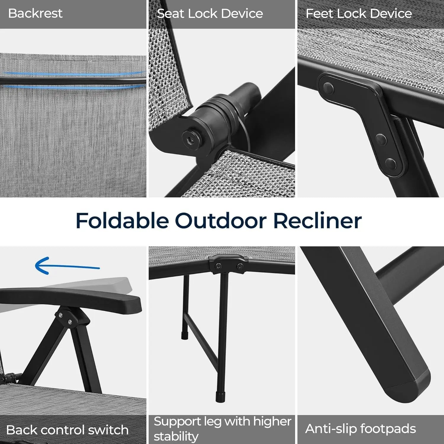 Outdoor Folding Chaise Lounge Set 2 Adjustable Reclining Chairs
